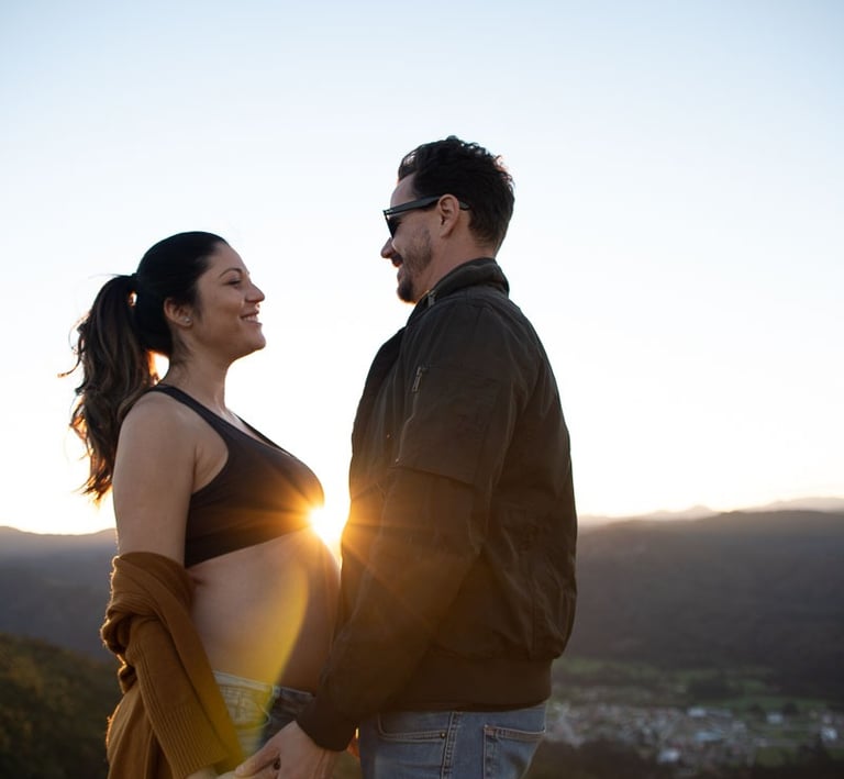 Ensaio ao ar livre, com luz natural e cenário da serra.
